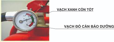 - Trường hợp bình chữa cháy có cấu tạo dạng bột thì nhìn vào kim đồng hồ trên bình, nếu kim chỉ về vạch đỏ thì tức là bình đã hết hoặc gần hết.