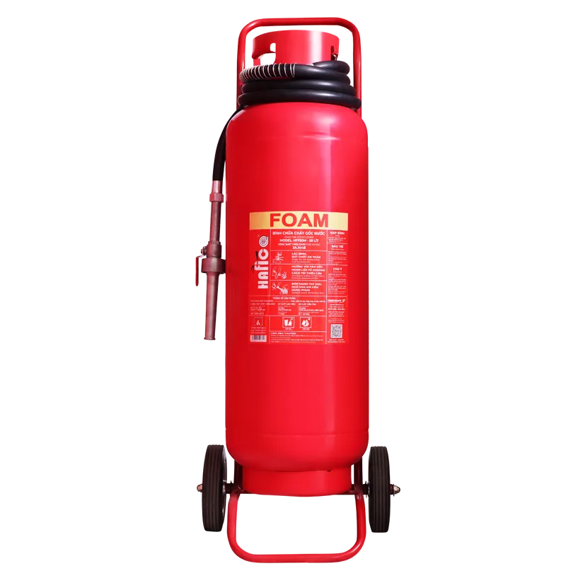 Bình cứu hỏa xe đẩy Hafico bọt foam 50 lít HFF50M là một thiết bị quan trọng trong việc phòng cháy chữa cháy, đặc biệt là trong các khu vực có nguy cơ cháy nổ cao như nhà máy, kho bãi, và các công trình xây dựng. Dưới đây là một số công dụng nổi bật của sản phẩm này: