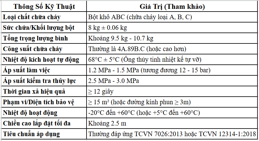 - Khối lượng 8kg: Dung tích lớn giúp bình có thể dập tắt các đám cháy lớn hơn, phù hợp cho các khu vực công cộng, nhà máy, hoặc hộ gia đình có diện tích lớn.