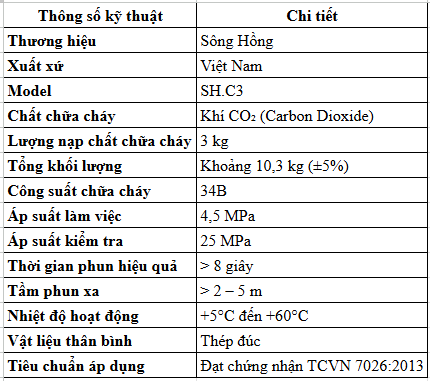 Thông Số Kỹ Thuật Của Bình Cứu Hỏa Sông Hồng Khí CO2 3Kg SH.C3