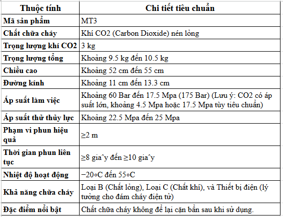 Thông Số Kỹ Thuật Của Bình Cứu Hỏa Khí CO2 3Kg MT3 Victory