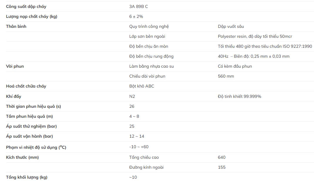 Thông Số Kỹ Thuật Của Bình Chữa Cháy Bột ABC 6Kg Vinafoam CMP6