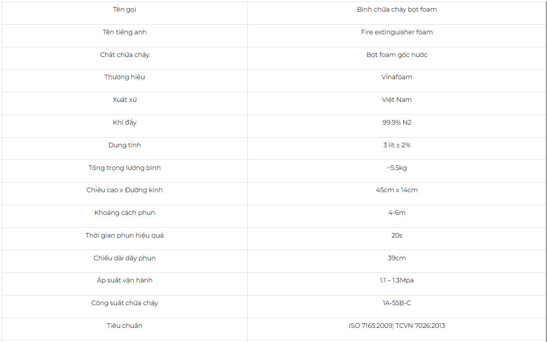 Thông Số Kỹ Thuật Của Bình Chữa Cháy Bọt Foam 3L Dành Cho Bếp V3F-K Vinafoam