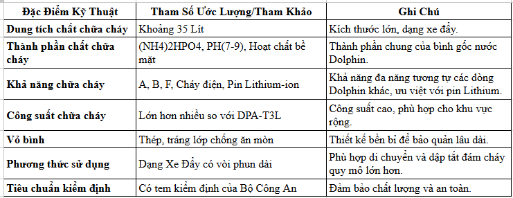 Thông Số Kỹ Thuật Của Bình Cứu Hỏa Xe Đẩy Đa Năng Gốc Nước 35 Lít Dolphin DPA-T35L