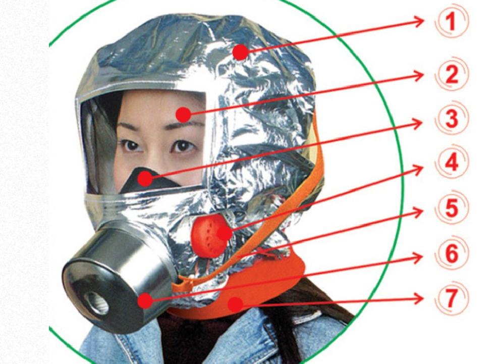 - Phần đầu mặt nạ TZL30 làm bằng vật liệu chống cháy, phía ngoài được phủ lớp màng bạc nhôm để ngăn sự bức xạ nhiệt, tránh gây tổn thương vùng đầu cho người đang thoát hiểm.