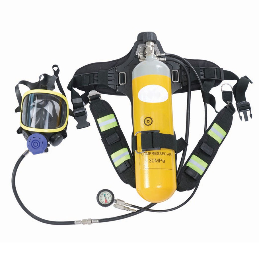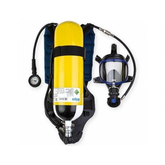 Bình thở kèm mặt nạ phòng độc bao gồm bình thở thép 6 lít áp lực 300 bar,thời gian sử dụng 60 phút+mặt nạ cách ly và kính quan sát 180 độ,dây đeo đồng hồ đo áp lực và còi báo động khi bình còn khí còn sử dụng được 5 phút(theo tiêu chuẩn châu âu)