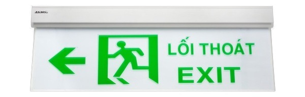 1. Đèn exit KT - 660 KENTOM có dòng chữ nổi hoặc ký hiệu hướng dẫn màu trắng trên nền màu xanh.