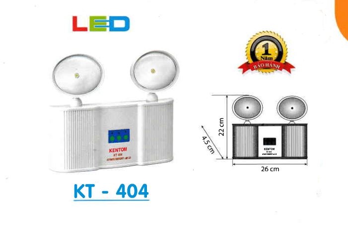 Đèn sạc khẩn cấp KT 404 KentomSản phẩm được thiết kế theo tiêu chuẩn PCCC cho việc chiếu sáng khẩn cấp lối thoát hiểm khi có sự cố hỏa hoạn, thiên tai, mất điện đột ngột… Vỏ và thân đèn làm từ nhựa cách điện cao cấp nên an toàn hơn, đồng thời ngăn chặn những xâm phạm của côn trùng và các yếu tố bên ngoài khác. Với hai đèn chiếu sáng có góc phản xạ và góc chiếu sáng rộng hơn và xa hơn nên giúp cho không gian trong trường hợp khẩn cấp có thể được chiếu sáng trong không gian lớn. Đồng thời, đèn sạc khẩn cấp KT404 Kentom được ứng dụng chip led cao cấp cho phép đèn hoạt động ổn định không suy giảm ánh sáng, không gây tỏa nhiệt nóng, thân thiện với môi trường.