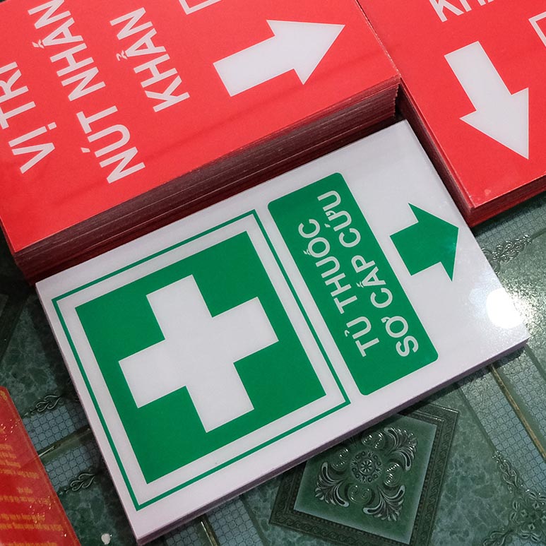⭐BIỂN BÁO VỊ TRÍ NÚT NHẤN KHẨN CHẤT LIỆU MICA