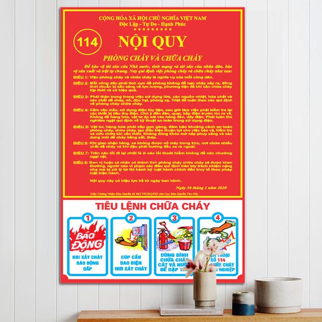 - Thiết kế linh hoạt: Bộ nội quy có thể được treo ở nhiều vị trí khác nhau, giúp dễ dàng tiếp cận và quan sát.