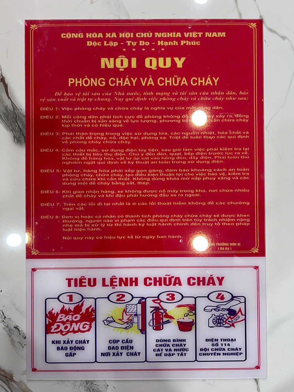Bộ nội quy tiêu lệnh mica kết hợp 2 trong 1 (40x60 cm) là một sản phẩm thiết yếu trong việc nâng cao an toàn phòng cháy chữa cháy (PCCC) tại các cơ sở, doanh nghiệp và khu vực công cộng. Với thiết kế thông minh và tính năng đa dạng, bộ nội quy này mang lại nhiều lợi ích cho người sử dụng.