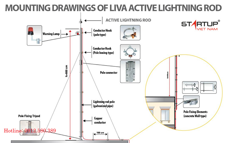 Cách lắp đặt Kim Thu Sét Liva Lap-Dx250