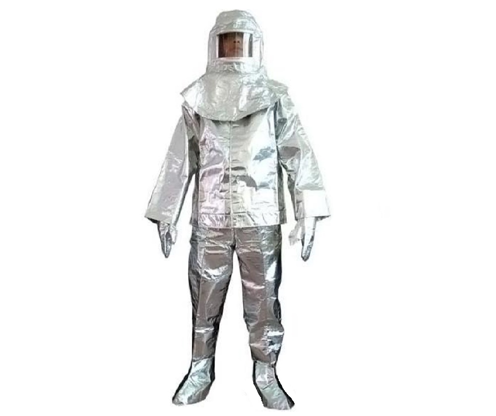 Làm bằng sợi thủy tinh tráng nhôm chống cháy không chứa amiang độc hại, chất liệu bóng chịu được nhiệt độ 500 độ. 1 lớp tráng nhôm kỹ thuật theo kỹ thuật mới làm bộ quần áo mềm và nhẹ hơn. Quần áo gồm 2 lớp: 1 lớp tráng nhôm kỹ thuật theo kỹ thuật mới làm bộ quần áo mềm và nhẹ hơn và 1 lớp lót Aramid màu trắng bên trong.