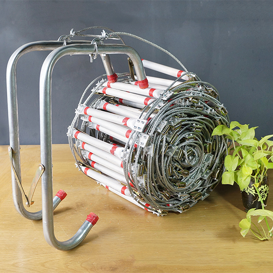 Thang dây chống cháy thoát hiểm nhà cao tầng có bậc thang làm bằng inox chắc chắn không gỉ, dây cáp làm bằng thép chịu được tải trọng cao. Thang dây inox được biết đến là một dụng cụ thoát hiểm nhà cao tầng, thiết bị chống cháy, thiết bị cứu hộ nhỏ gọn dễ sử dụng có thể đổi chiều, dành cho cả người già, người tàn tật và trẻ em nên khi xảy ra sự cố chỉ cần thắt chặt vào chỗ cố định rồi thả tự do, mọi người đểu có thể thay phiên nhau đi thang dây inox xuống một cách an toàn.