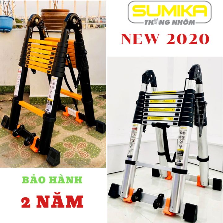 * Thang nhôm rút đôi Sumika được thiết kế dạng anten gọn nhẹ, có thể thu ngắn dài tùy theo nhu cầu sử dụng. Ngoài ra thang có thể gấp chữ A , L , I và sử dụng cho mọi địa hình. Thang có thể rút gọn 98cm khi không sử dụng, ít chiếm không gian và diện tích cất giữ.