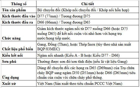 Bộ chuyển đổi trụ 3 cửa 77/66 là một thiết bị quan trọng trong hệ thống phòng cháy chữa cháy (PCCC) của Bộ Quốc phòng Việt Nam. Thiết bị này được thiết kế để đảm bảo việc cung cấp nước cho các hệ thống chữa cháy một cách hiệu quả và an toàn.
