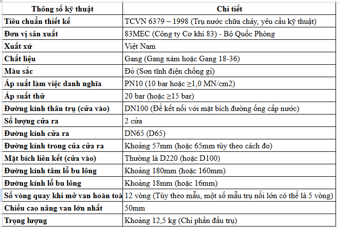 Thông Số Kỹ Thuật Của Trụ Chữa Cháy 2 Cửa Bộ Quốc Phòng