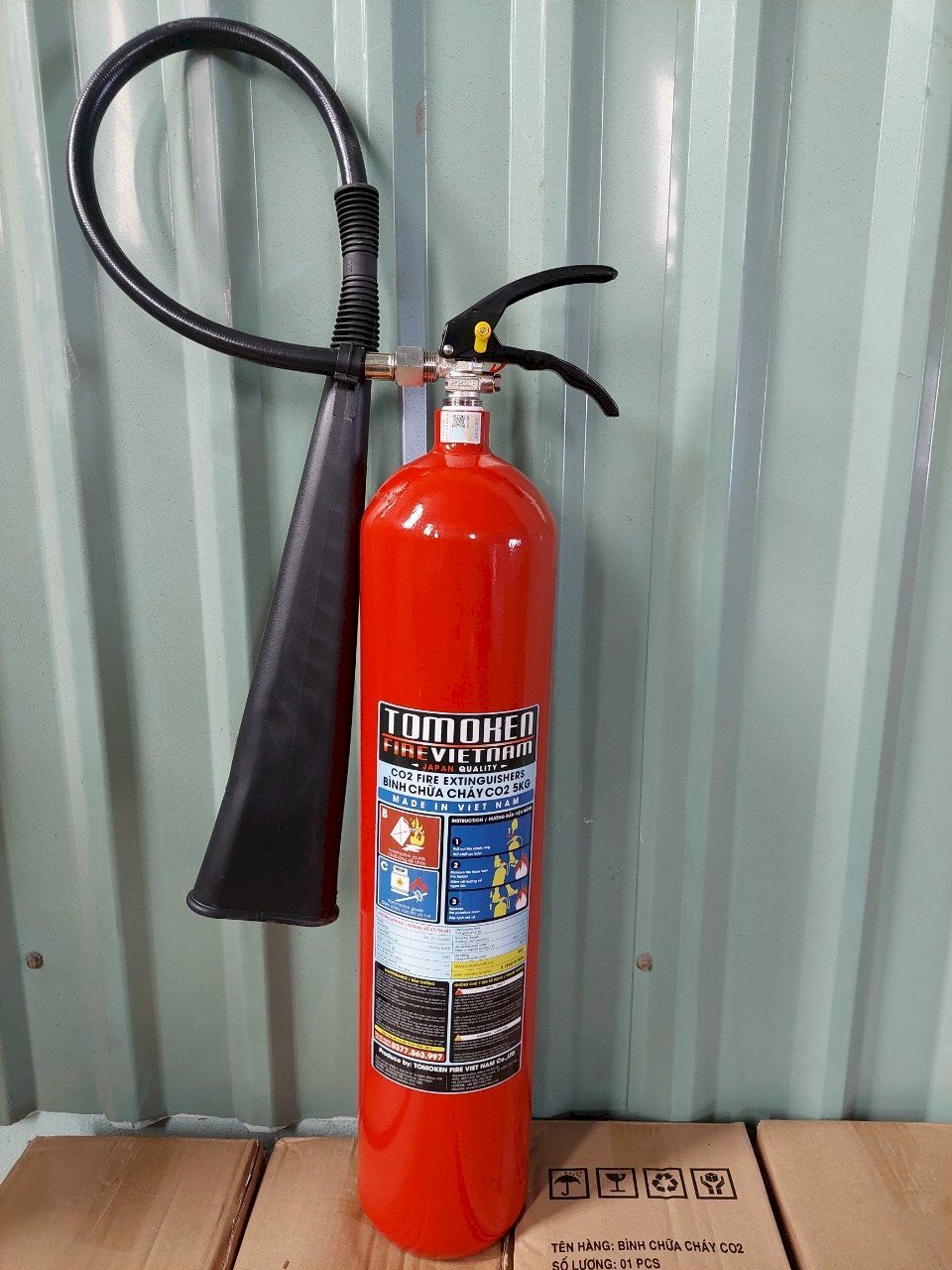 - Bình chữa cháy 5kg khí CO2 TMK-VJ-CO2/5Kg Tomoken là lựa chọn dập lửa thiết bị điện hiệu suất cao không chỉ giúp dập tắt đám cháy nhanh chóng mà còn bảo vệ các thiết bị vi mạch điện tử mắc tiền ít bị hư hại. Mẫu bình co2 5kg của Tomoken ở phần tay nắm của loa phun có một cụm cao su dày để bảo vệ tay không bị bỏng lạnh khi cầm trực tiếp.