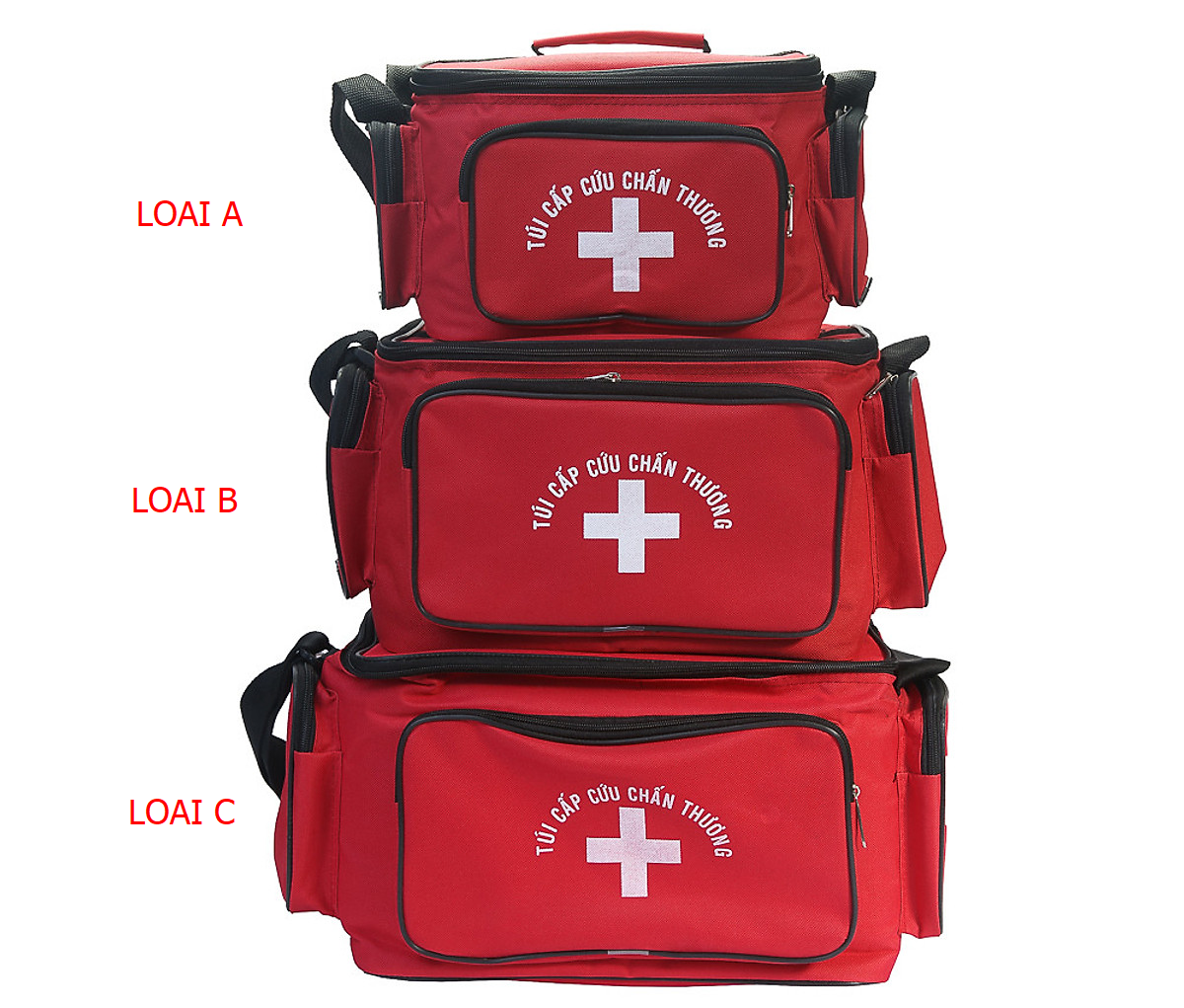 Để dễ nhận diện và sử dụng, túi sơ cứu được thiết kế màu đỏ hoặc màu đen, có ký hiệu chữ thập nổi bật. Có 3 loại túi sơ cấp cứu phù hợp với số lượng người lao động tại cơ sở kinh doanh, sản xuất, văn phòng, công ty. Cụ thể như sau: