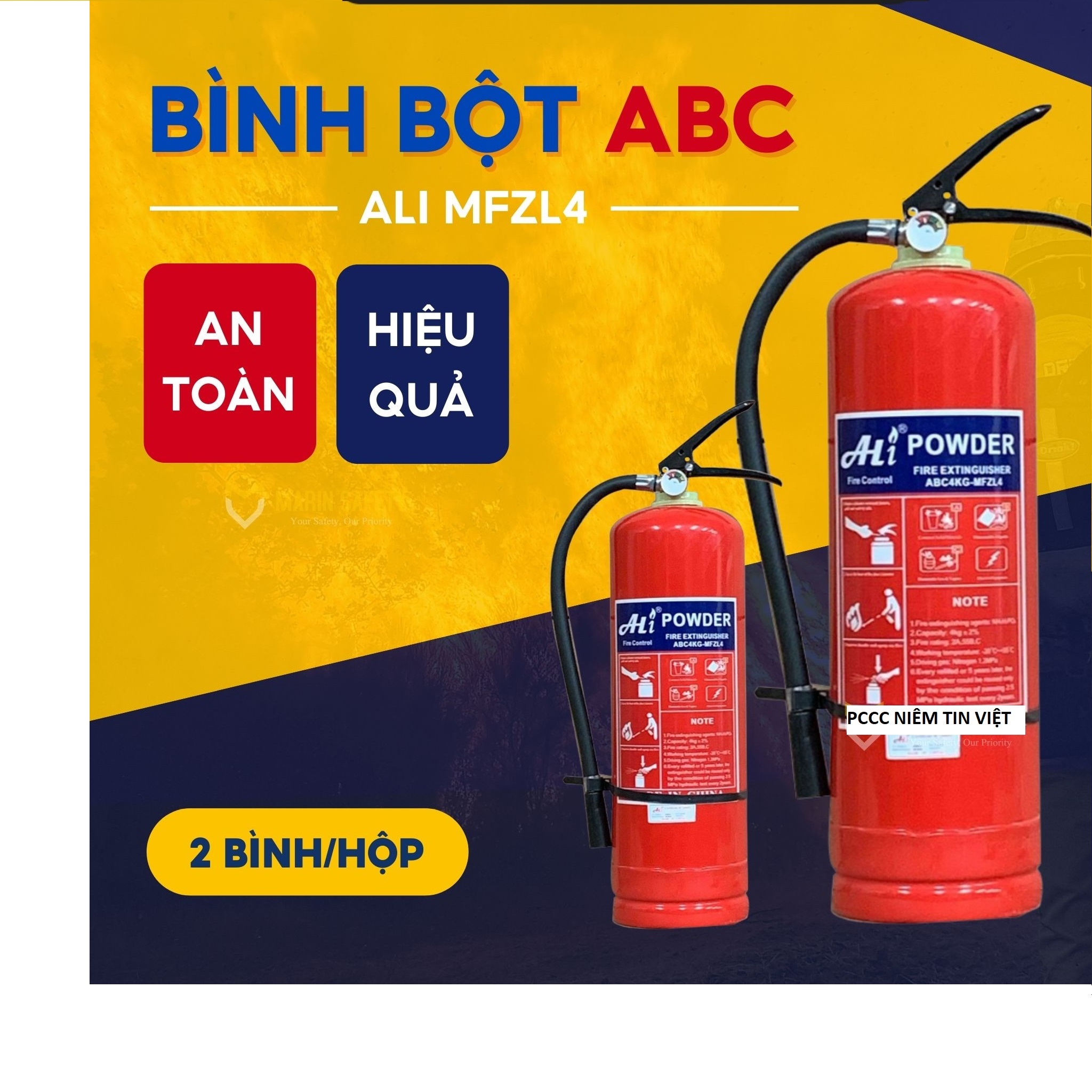 ✔️Bình chữa cháy bột ABC MFZL4 - 4kg: có chứa 4kg bột chữa cháy trong bình, khối lượng bình là 9kg.