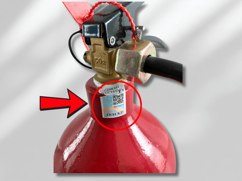 - Dán tem kiểm định hình tròn, in mã QR do Cục Cảnh sát PCCC & CNCH cấp.