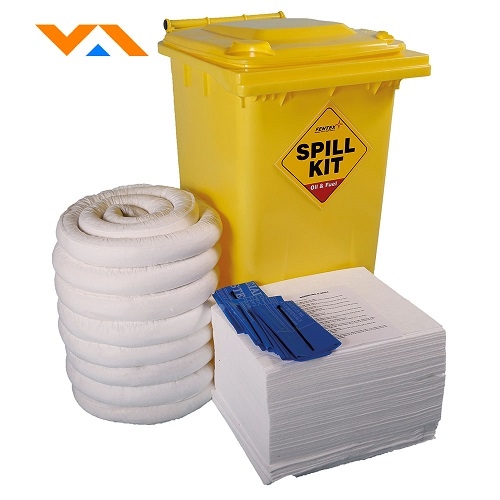 Thông thuờng mỗi bộ đồ ứng cứu bao gồm: Chất thấm thích hợp đóng gói dạng bao, phao quây, gối thấm, khăn thấm, bao tay, xẻng xúc, thẻ hướng dẫn sử dụng. Tất cả đựng trong 1 thùng lớn có bánh xe, dung tích 30L – 240L hoặc túi xách tay.