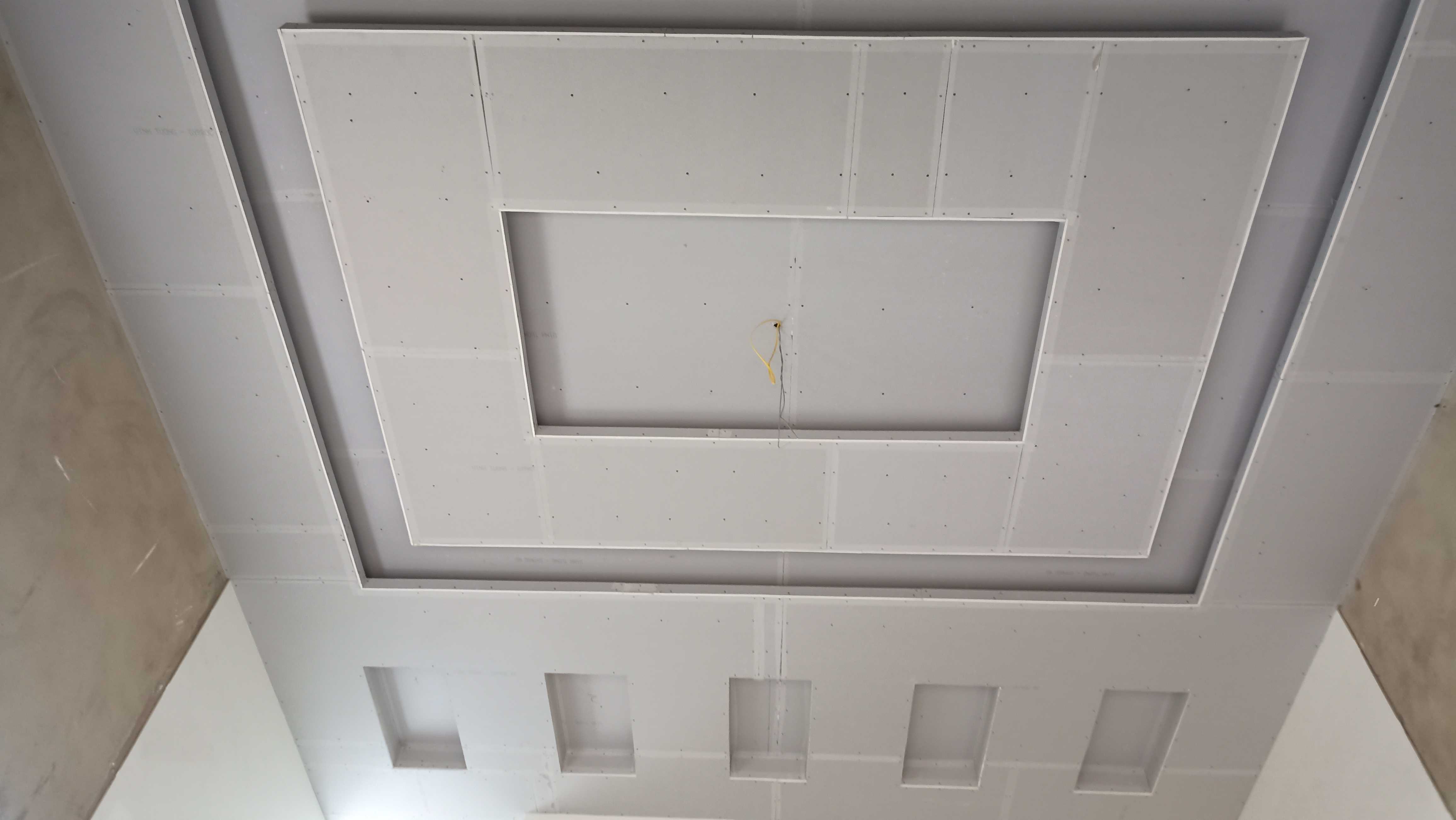 Tấm thạch cao là bước hoàn thiện cuối cùng của trần thạch cao chìm phần thô, được liên kết vào khung xương tạo thành bề mặt trần thạch cao hoàn thiện.