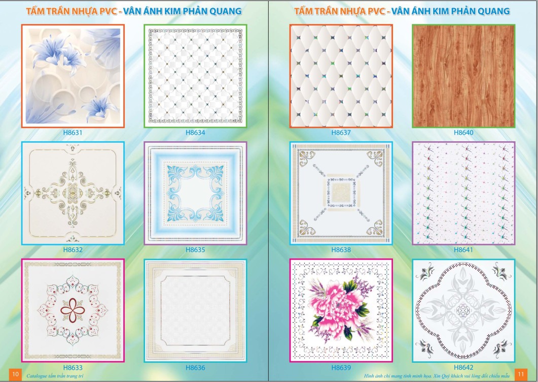 Tấm trần nhựa pvc được cấu tạo từ nhựa pvc, tấm trần nhựa pvc hay còn gọi là tấm trần thả nhựa, tấm trần nhựa hoa văn. Vì được dán các lớp film 3D với các mẫu mã, hoa văn trang trí đa dạng với hơn 18 mẫu hoa văn. Tấm trần thả pvc chịu được nhiệt độ cao, chống va đập, trọng lượng nhẹ nên dễ chi chuyển, thi công.